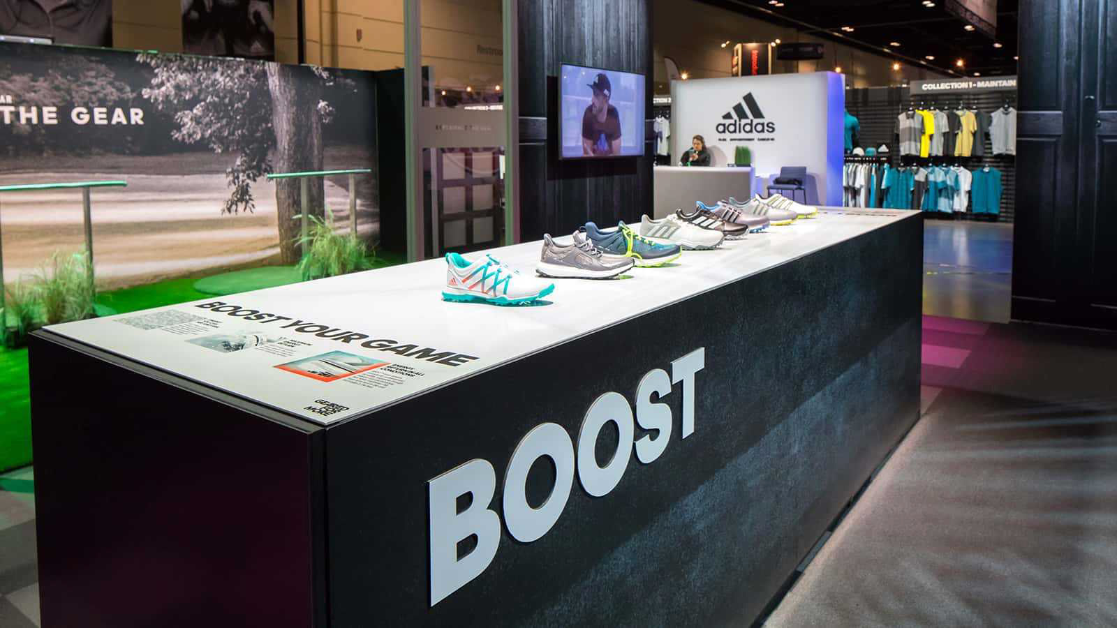 Creative adipure space via frosted glass gives invite-only guests a peek at the new golf line